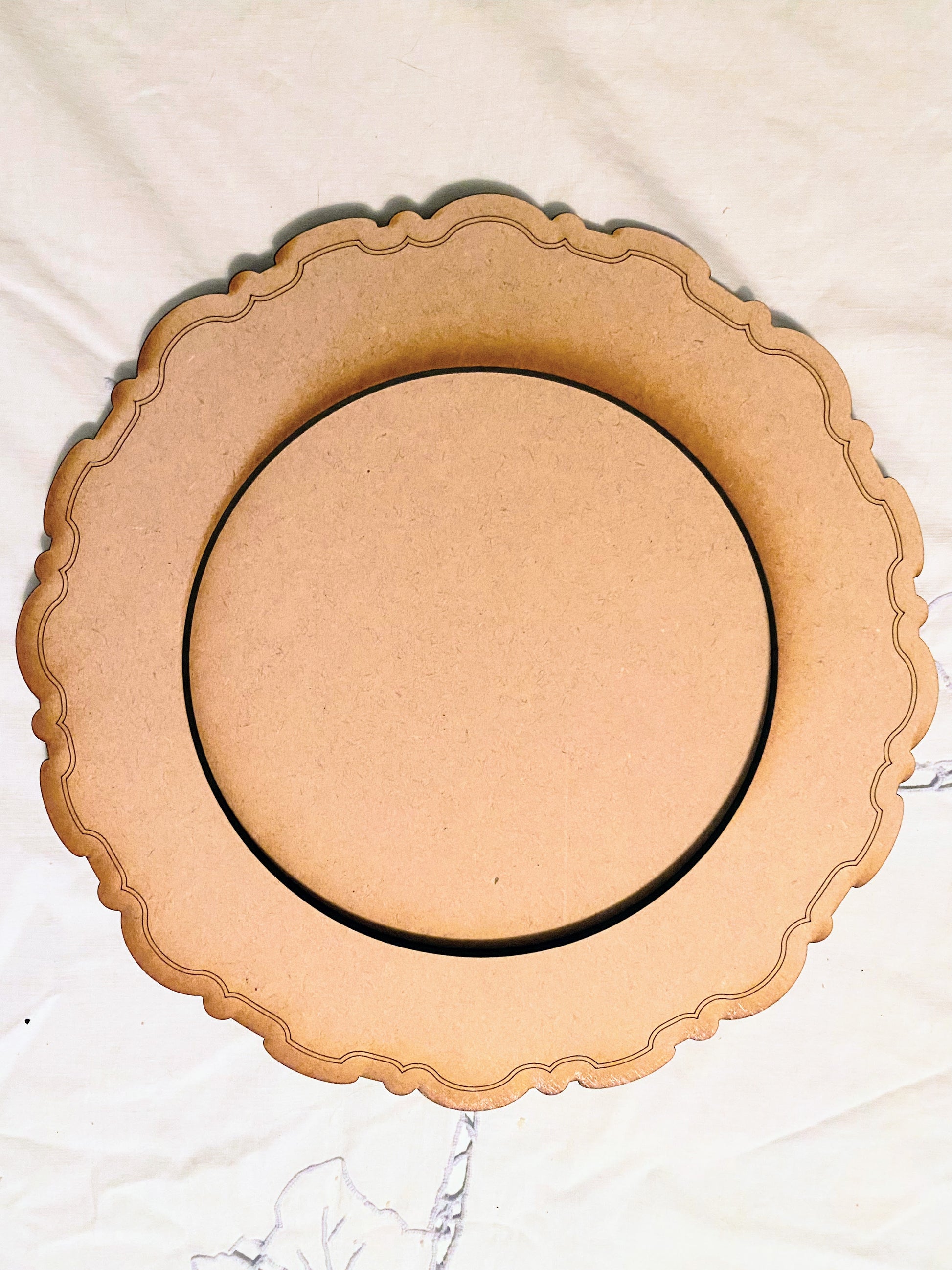 Create a beautiful, heirloom-style holiday plate or charger with this layered faux plate kit, handcrafted in my home studio from sturdy ¼” MDF. This three-piece set includes: