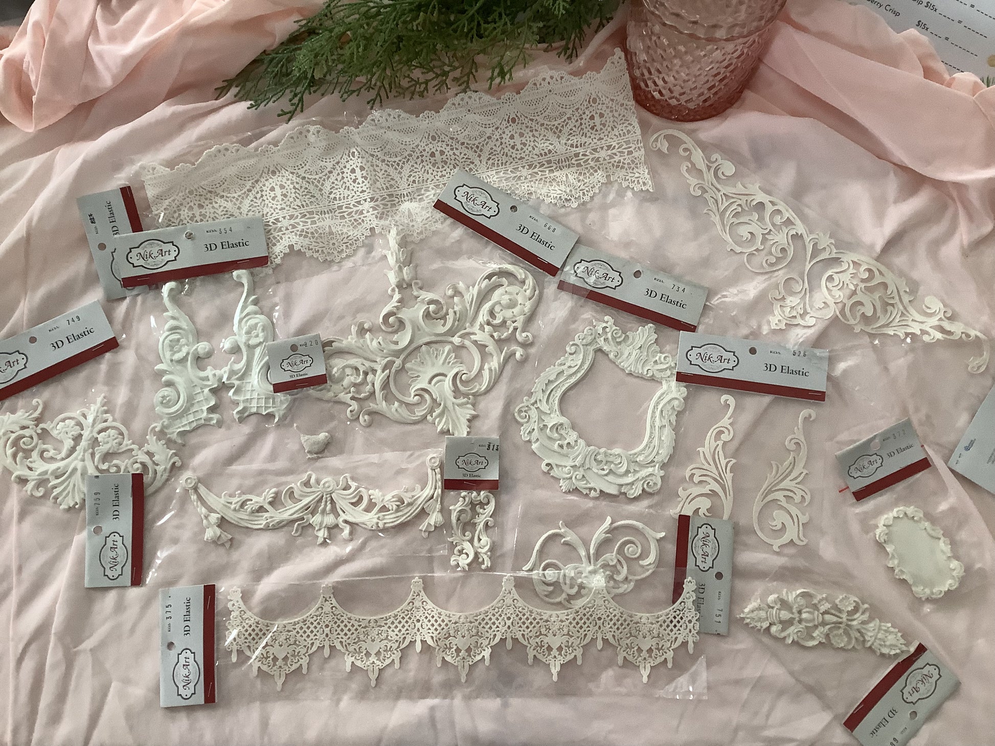 Nik·Art embellishments are made from a flexible 3D Elastic material with stunning raised detail. They bend, trim, paint, and finish beautifully, making them ideal for adding an elegant European touch to your creative work.