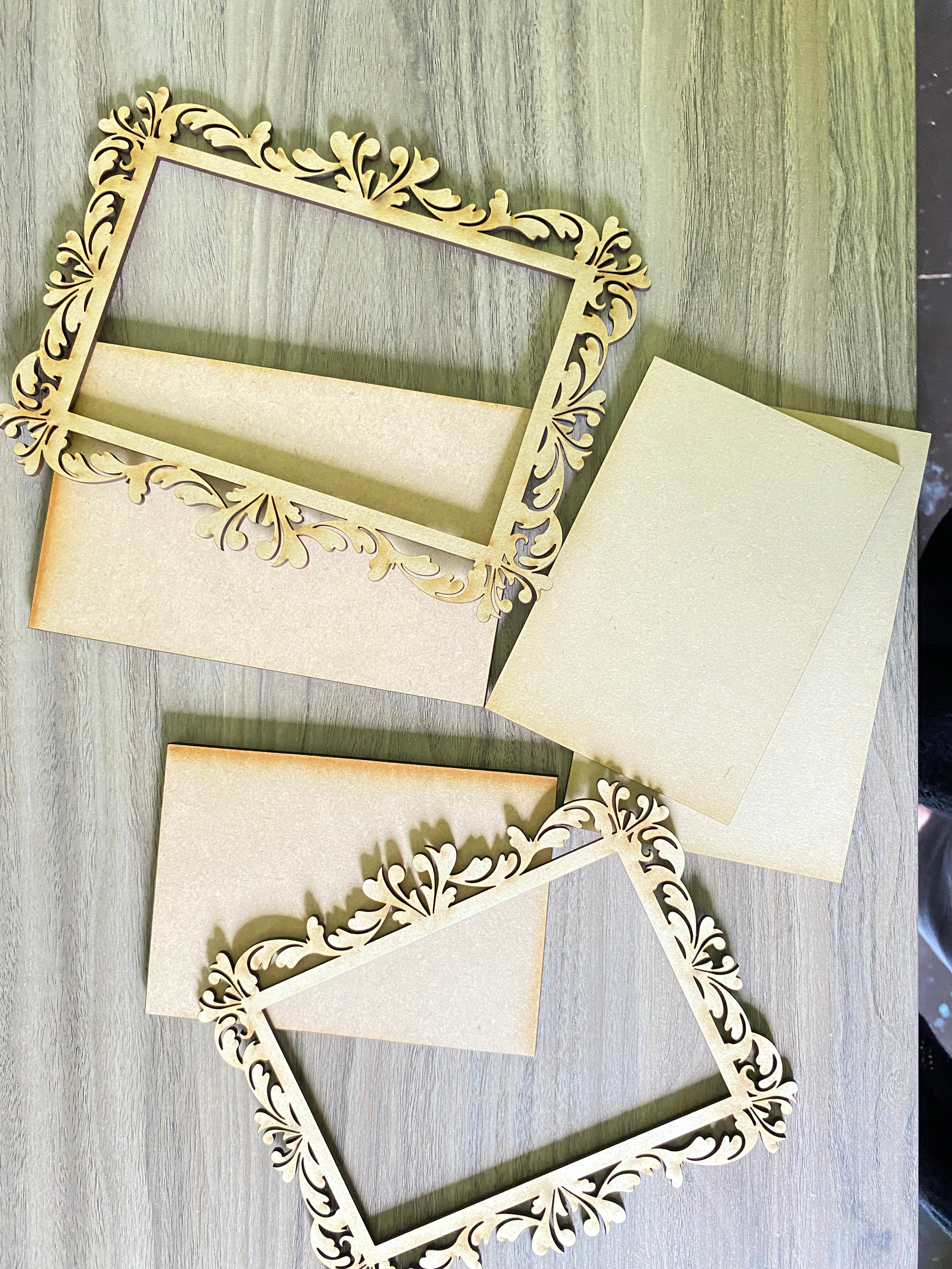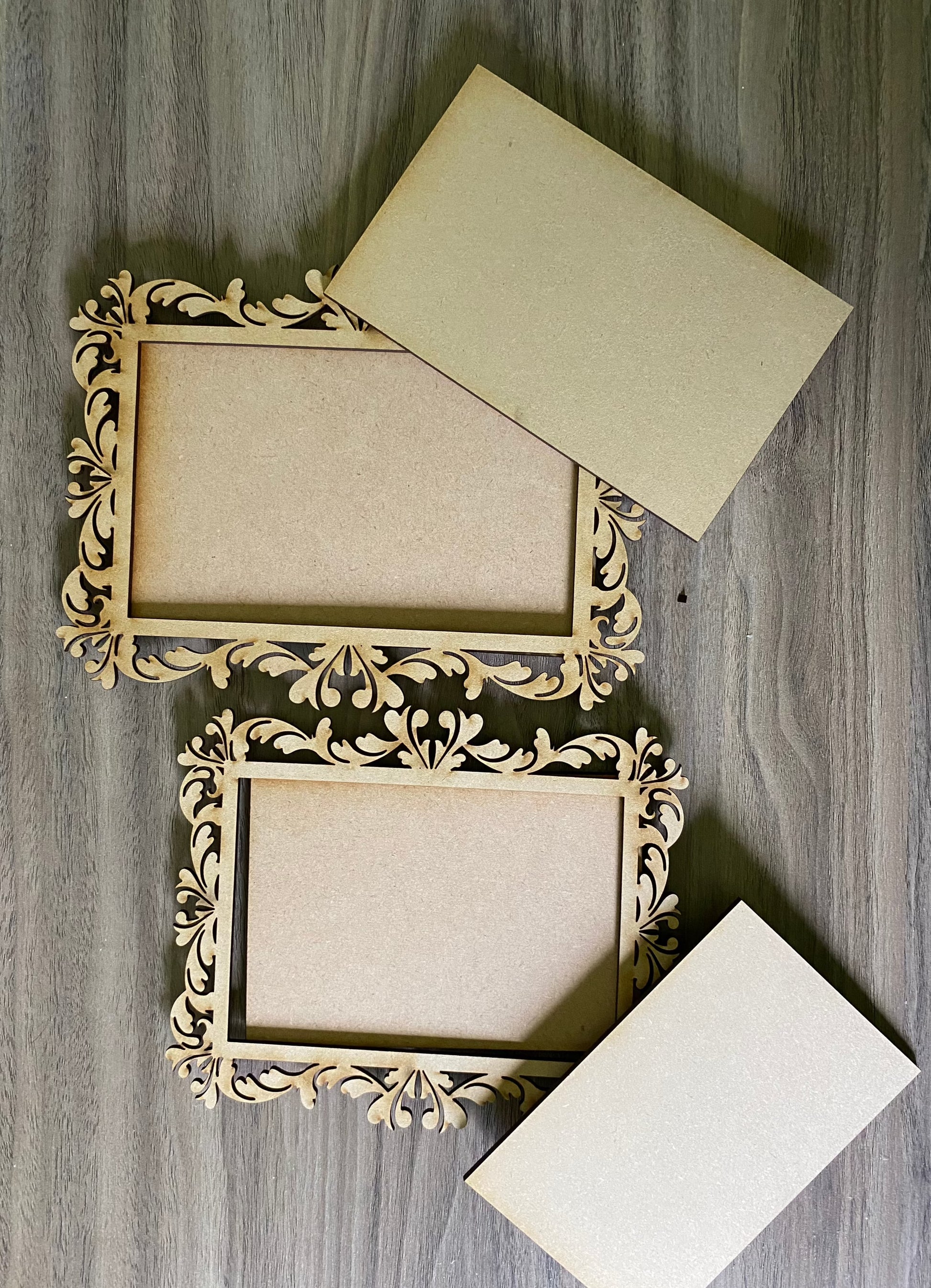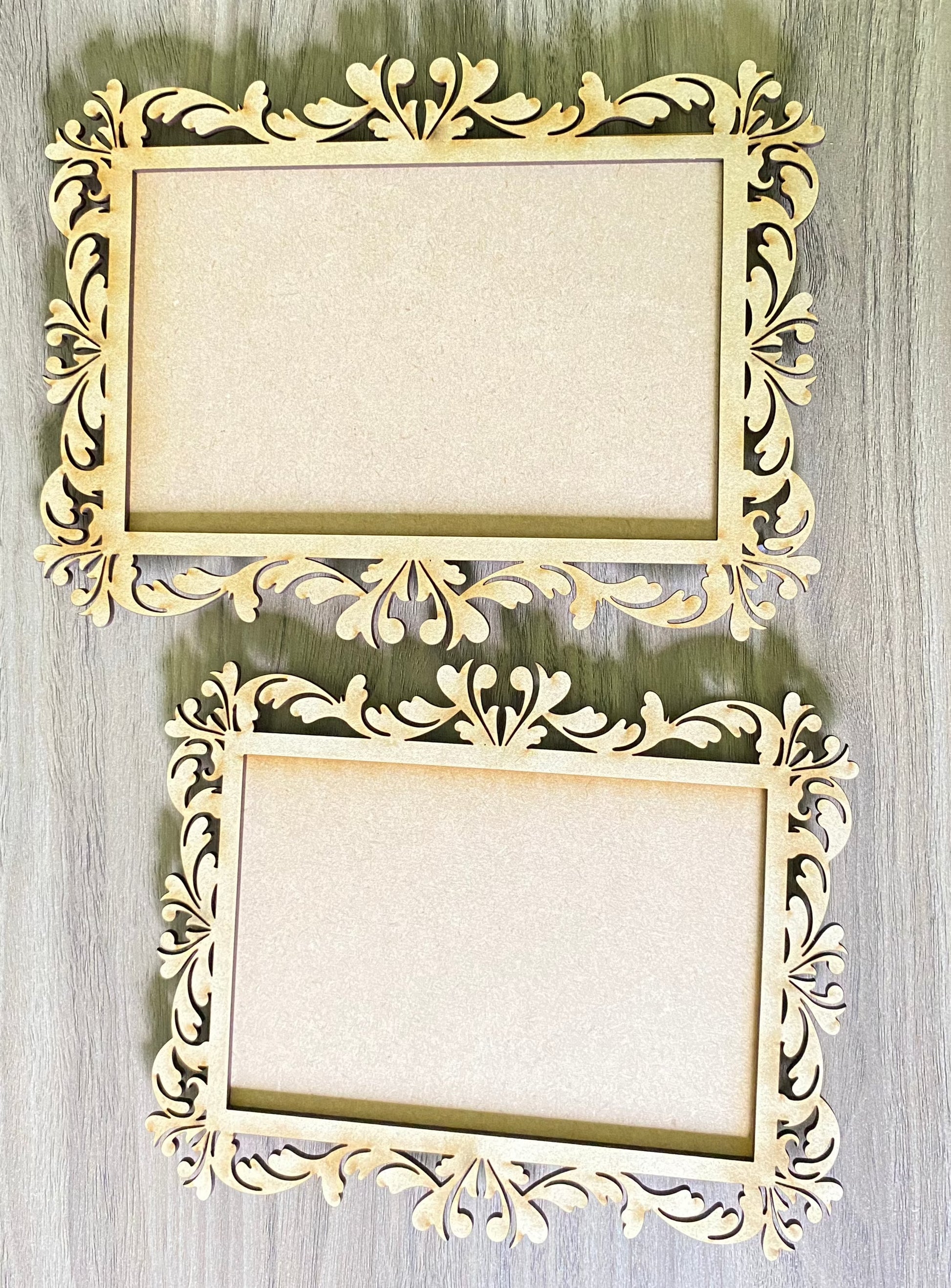 This 2-piece set of ornate rectangle frames features a 1/4" bottom and a 1/8" recessed top, plus a center rectangle inlay to unleash your creativity.