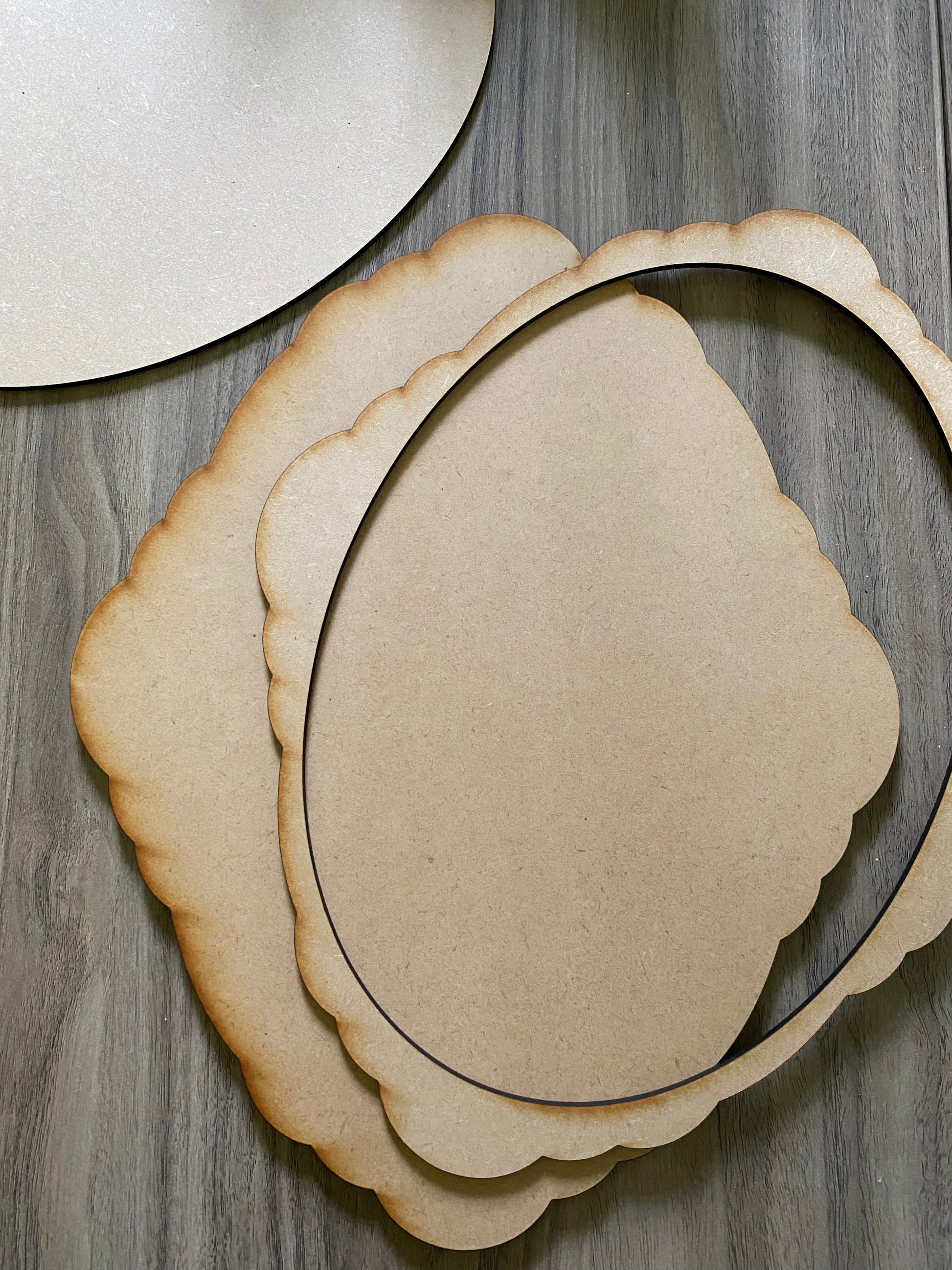 Oval frame with trim - bottom is 1/4", while the top is 1/8" recessed out. Also included is a center oval inlay to get creative with.
