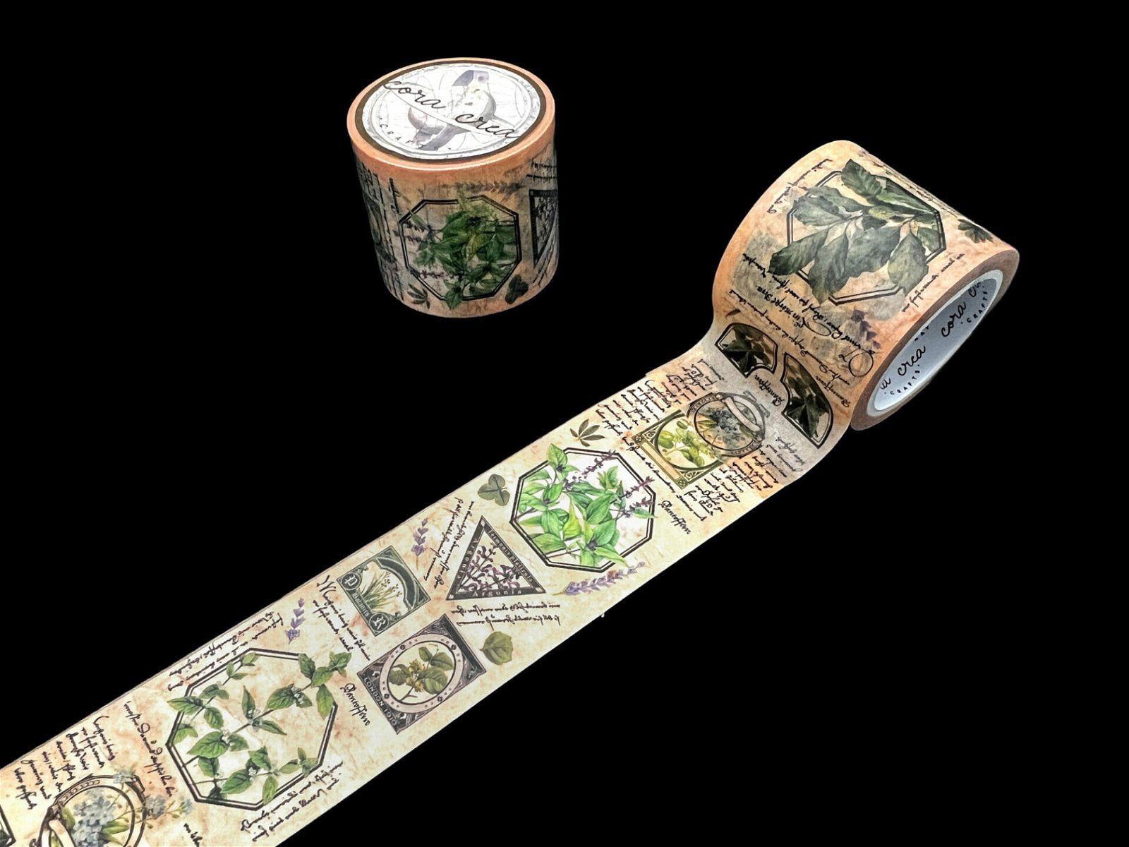 A unique vintage style washi tape designed by artist Storm Sparrow for CoraCreaCrafts. This 4cm wide tape features vintage illustrations of plants and botanical elements.